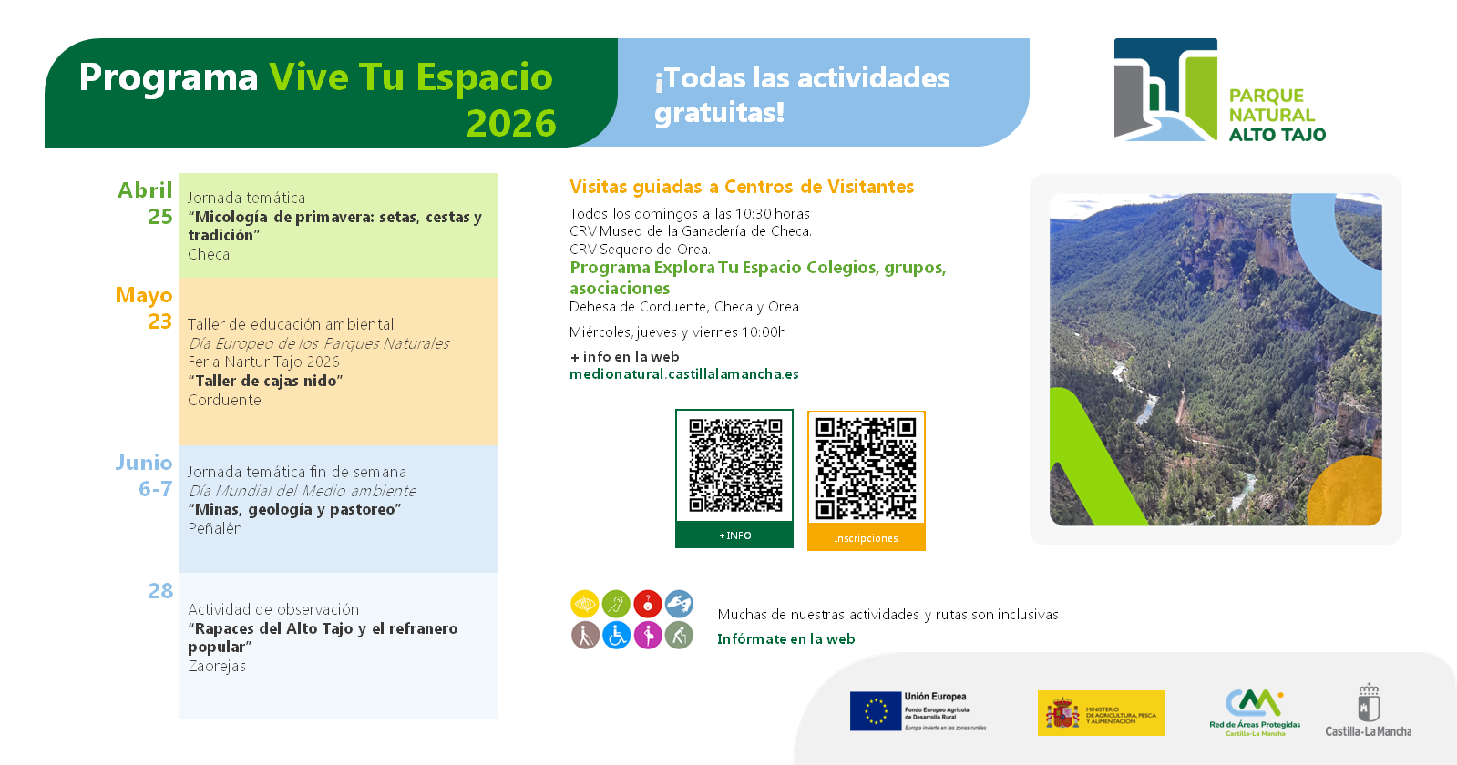 Los colegios, asociaciones y otras entidades tienen visitas especiales los jueves y viernes con el programa "EXPLORA TU ESPACIO". Visita este enlace y elige tu espacio natural. Además este año desde la JCCM existe una ayuda para poder cubrir los gastos de desplazamiento.