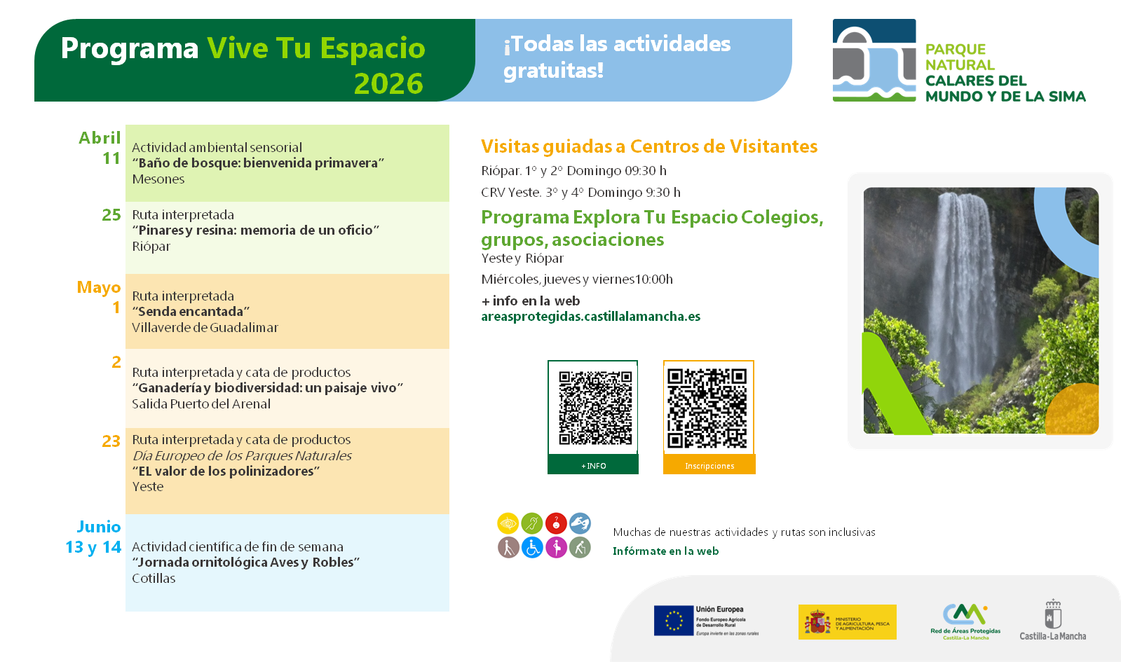 Para más información de cada actividad y sus requisitos e información detallada tendrás que acceder a la web de Áreas Protegidas: ACTIVIDADES ORGANIZADAS