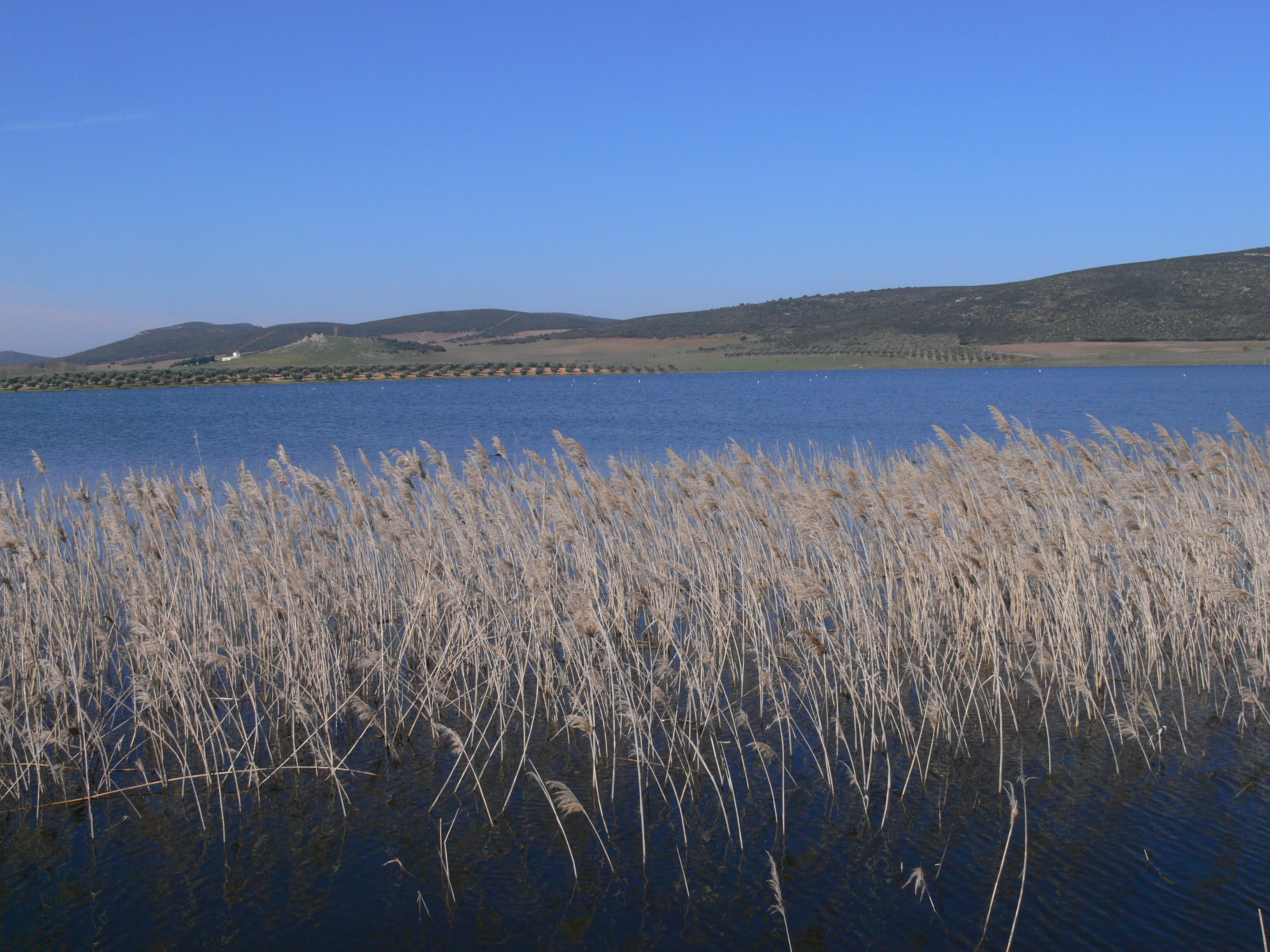 De forma dispersa aparecen formaciones de castañuela (Scirpus maritimus) y en las márgenes carrizales y espadañales.
