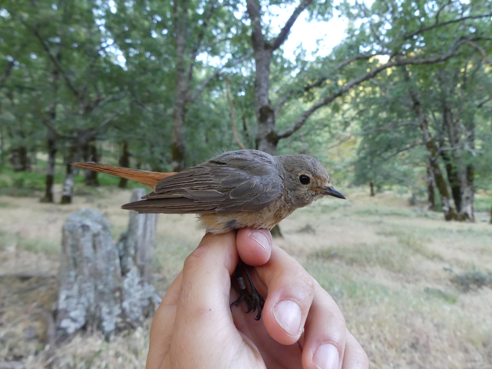 El colirrojo real es una pequeña ave paseriforme (forma de gorrión) de la familia de los túrdidos, como el más urbanita mirlo.