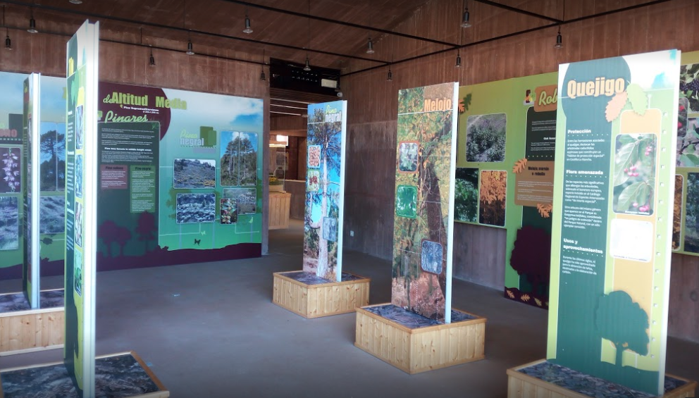 El contenido expositivo incluye una sencilla representación de diversos aspectos de los recursos de los espacios naturales protegidos, empezando por un esquema de la Red de Areas Protegidas de Castilla-la Mancha, para pasar a ilustrar y describir distintos recursos, como distintos paisajes, geología y geomorfología y formaciones y especies vegetales, con especial incidencia en los recursos micológicos, de los que la Sierra de Valdemeca es singularmente rica.