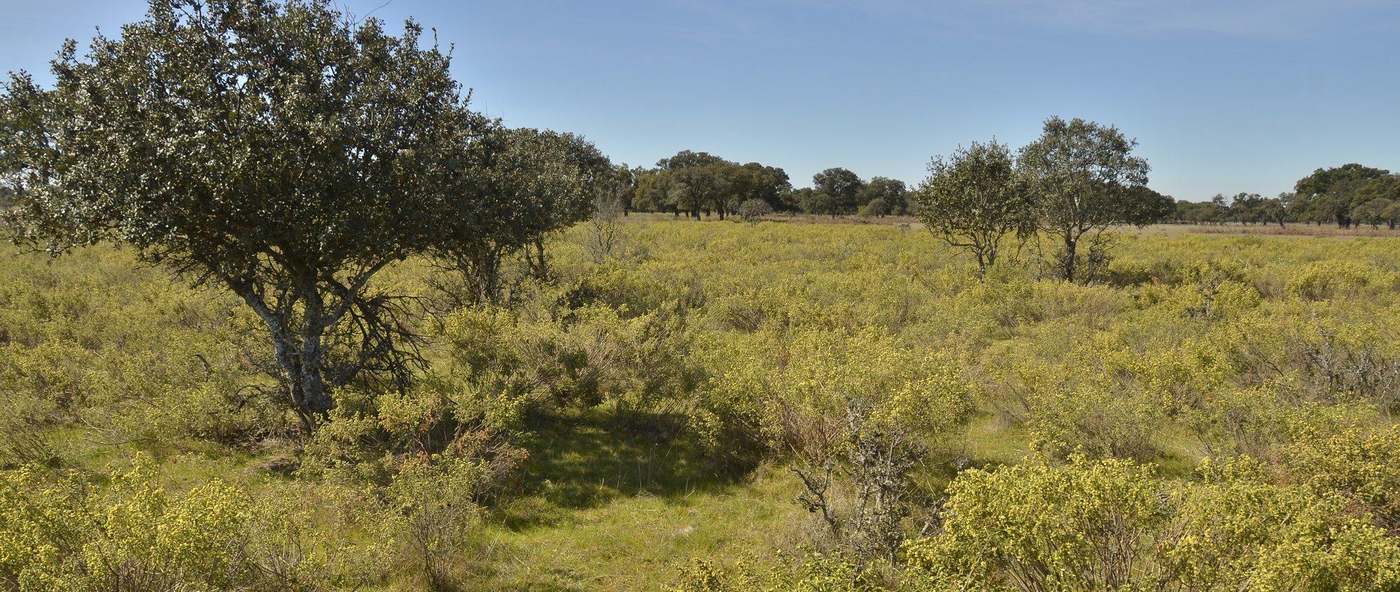 En cuanto a la vegetación arbórea, puede afirmarse que todo el territorio presenta vocación forestal, aunque este carácter haya sido más o menos modificado. Las actividades humanas, centradas fundamentalmente en el aprovechamiento ganadero del área, han tenido como consecuencia el adehesamiento de la vegetación arbórea y su modificación específica sobre todo en zonas de valle, favoreciendo las especies de las que se obtenía un mayor rendimiento, fundamentalmente encina (Quercus ilex subsp. ballota) y alcornoque (Quercus suber), por su aprovechamiento de fruto, leña, ramón y corcho. Pueden encontrarse también dehesas mixtas de las especies anteriores mezcladas con quejigo (Quercus faginea ssp. broteroi) y fresnos (Fraxinus angustifolia), en los lugares con mayor disponibilidad hídrica.